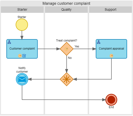 En el ejemplo de arriba, podemos ver cómo una actividad de notificación al cliente puede ser ejecutada por un sistema automatizado, usando datos de diferentes etapas del flujo de trabajo. Eso significa que un funcionario que trabaja en casa puede concentrarse sólo en actividades importantes. La automación de procesos puede lidiar con la redacción de e-mails, buscando todos los datos e informaciones relacionadas a un reclamo específico, por ejemplo.
