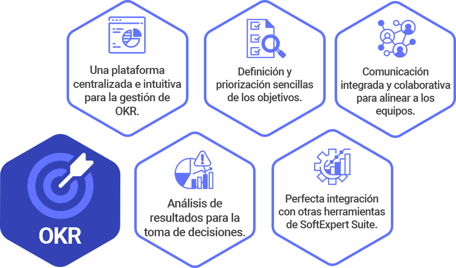 El desarrollo y medición de los OKR, así como la trazabilidad de los mismos puede constituir una tarea compleja. SoftExpert OKR es la solución desarrollada por SoftExpert para responder a las necesidades específicas de las empresas que buscan resultados en ciclos más cortos, este componente refuerza la cooperación entre equipos, permitiéndoles centrarse más en los objetivos y lograr resultados más rápidamente.