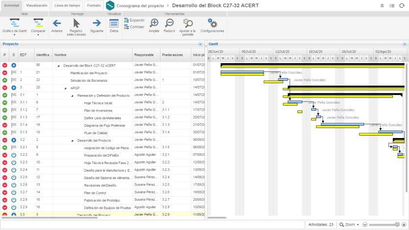 - Alcance y tiempo: Edita y comparte las informaciones de los proyectos en tiempo real. Proporciona en secuencia las actividades en múltiplos niveles (WBS) con gráficos de Gantt, camino crítico, red de precedencias y marcos del proyecto. Control de las revisiones de los proyectos. Importación y exportación de archivos de MS Project.