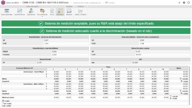 - Provee la medición de análisis del sistema con estudios de Linealidad, Amplitud, Tendencia, R&R (Promedio y Amplitud / ANOVA y Atributo).