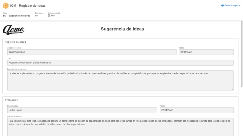 - Someta las ideas a flujos de evaluación y aprobación, fomentando la colaboración entre las partes interesadas.