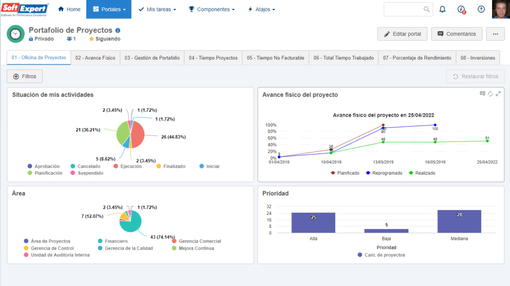 Gestione todo su portafolio de proyectos de innovación y cambios, acompañando y midiendo los indicadores de desempeño.