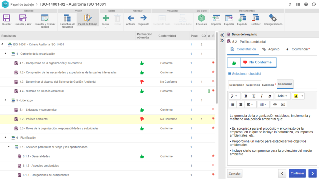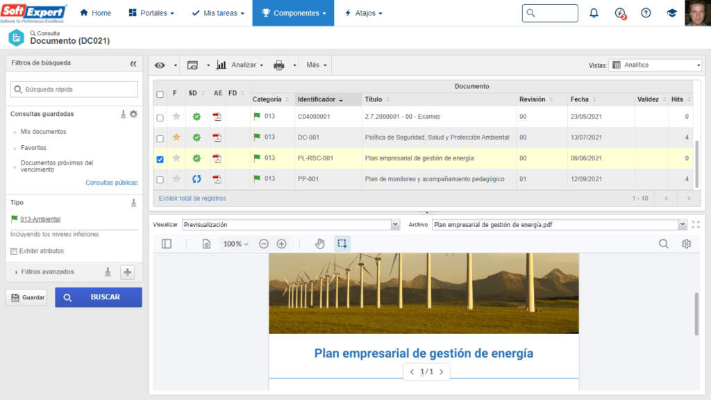 - Cree, revise y apruebe documentos como procedimientos y políticas medioambientales, garantizando de forma centralizada el cumplimiento y la trazabilidad.