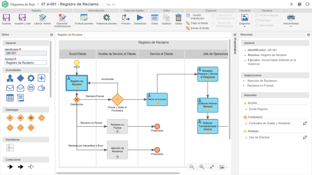 Conviértase en un especialista de procesos y mejore la colaboración entre áreas con una herramienta que integra en un solo lugar todo lo necesario con metodología BPMN: Workflows, analytics, revisión de procesos, documentos, formularios y más.