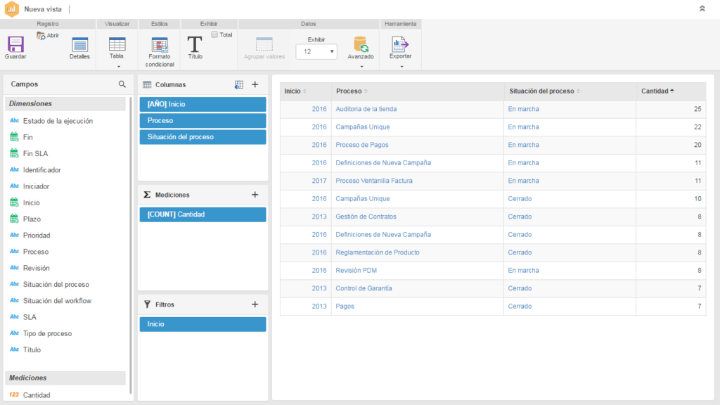 Obtenga información que ayude en la toma de decisiones y revele oportunidades de mejora gracias a las herramientas de análisis de datos de la plataforma BPM.