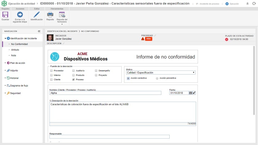 - Acelera los procesos de registro, revisión y aprobación de problemas y reduce el índice de recurrencia a través de procesos consistentes y de investigación y acciones correctivas.